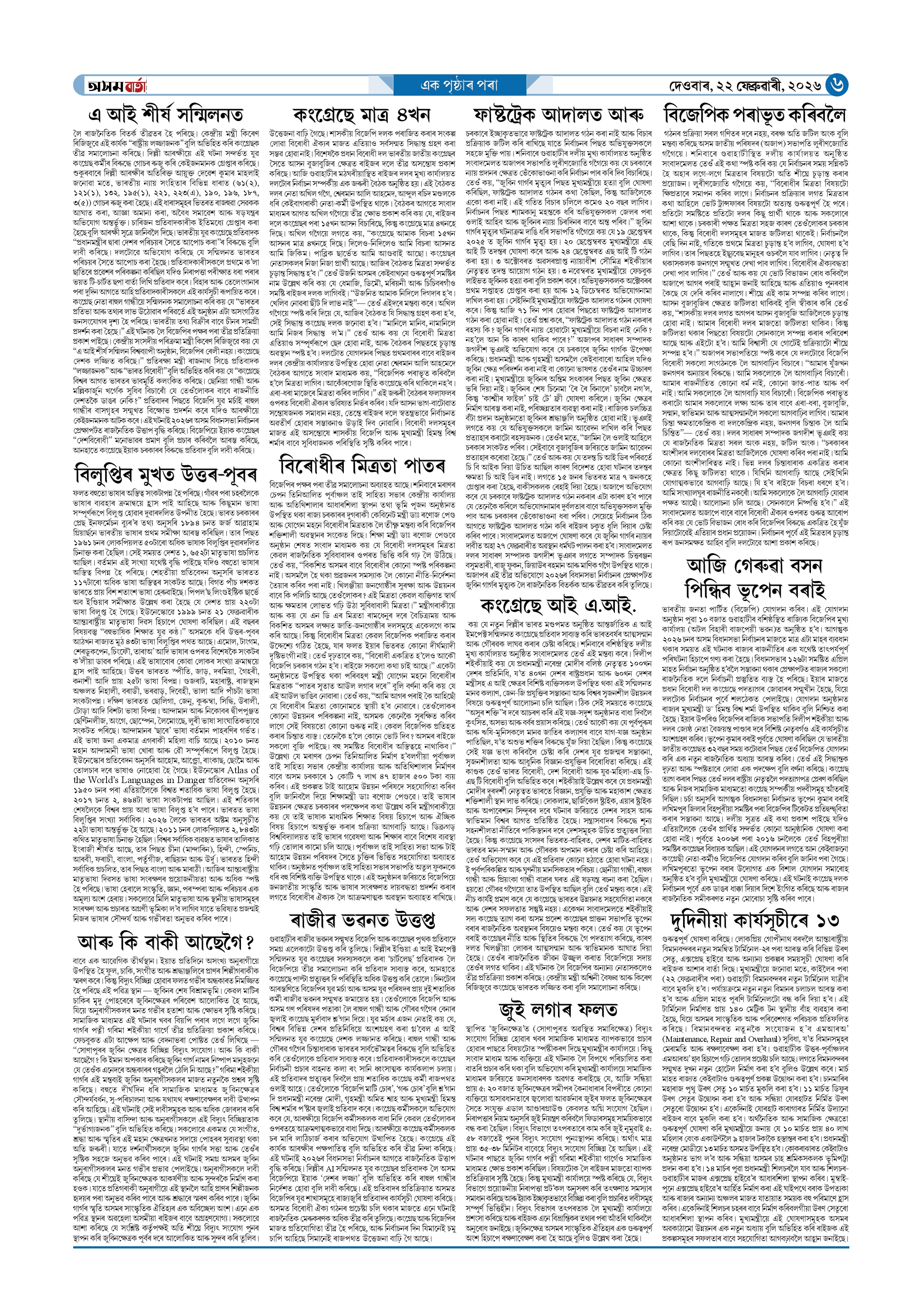 22-02-2026 Page: 6 February 22, 2026 Asom Barta Page 1Page 2Page 3Page 4Page 5Page 6Page 7Page 8 Thumbnails × 22-02-2026 Page 1Page 2Page 3Page 4Page 5Page 6Page 7Page 8 Full PDF << First << 5 6 >> Last >> << First << 6 >> Last >> Hide Page 1Page 2Page 3Page 4Page 5Page 6Page 7Page 8