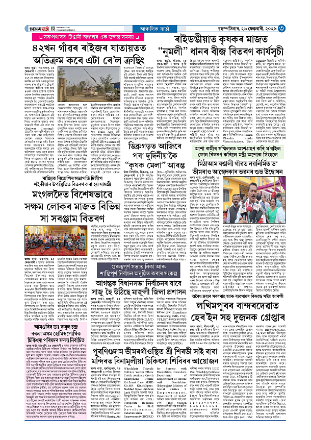 26-02-2026 Page: 3 February 26, 2026 Asom Barta Page 1Page 2Page 3Page 4Page 5Page 6Page 7Page 8 Thumbnails × 26-02-2026 Page 1Page 2Page 3Page 4Page 5Page 6Page 7Page 8 Full PDF << First << 2 3 >> Last >> << First << 3 >> Last >> Hide Page 1Page 2Page 3Page 4Page 5Page 6Page 7Page 8