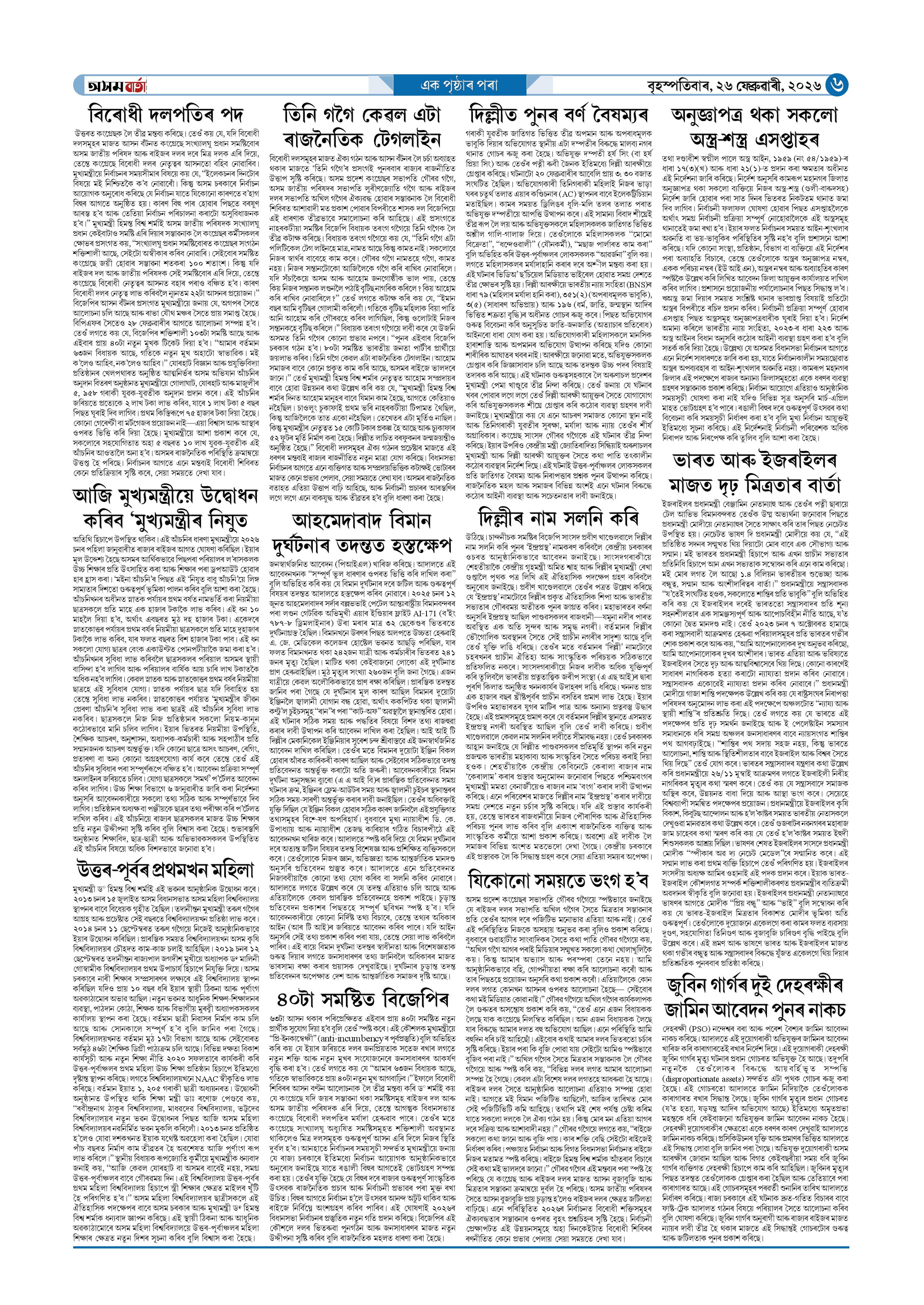 26-02-2026 Page: 6 February 26, 2026 Asom Barta Page 1Page 2Page 3Page 4Page 5Page 6Page 7Page 8 Thumbnails × 26-02-2026 Page 1Page 2Page 3Page 4Page 5Page 6Page 7Page 8 Full PDF << First << 5 6 >> Last >> << First << 6 >> Last >> Hide Page 1Page 2Page 3Page 4Page 5Page 6Page 7Page 8