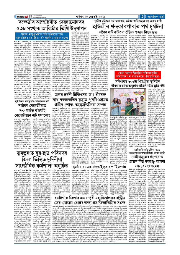 28-02-2026 Page: 3 February 28, 2026 Asom Barta Page 1Page 2Page 3Page 4Page 5Page 6Page 7Page 8 Thumbnails × 28-02-2026 Page 1Page 2Page 3Page 4Page 5Page 6Page 7Page 8 Full PDF << First << 2 3 >> Last >> << First << 3 >> Last >> Hide Page 1Page 2Page 3Page 4Page 5Page 6Page 7Page 8