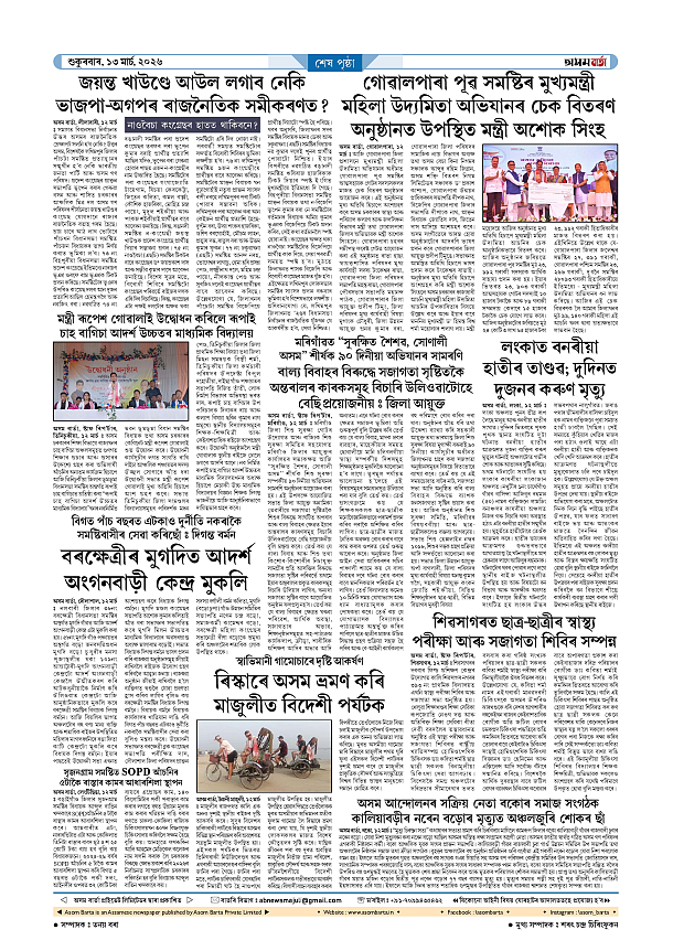 13-03-2026 Page: 7 March 13, 2026 Asom Barta Page 1Page 2Page 3Page 4Page 5Page 6Page 7 Thumbnails × 13-03-2026 Page 1Page 2Page 3Page 4Page 5Page 6Page 7 Full PDF << First << 6 7 >> Last >> << First << 7 >> Last >> Hide Page 1Page 2Page 3Page 4Page 5Page 6Page 7