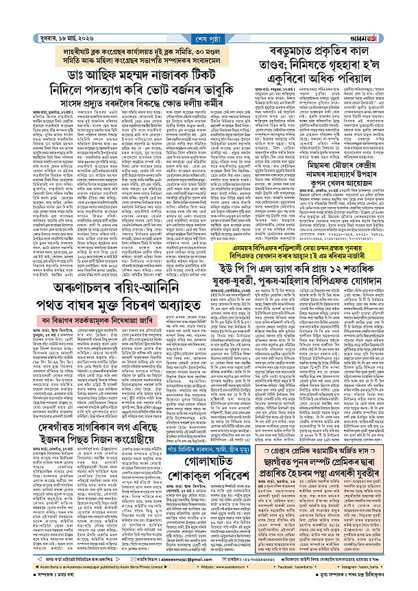 18-03-2026 Page: 7 March 18, 2026 Asom Barta Page 1Page 2Page 3Page 4Page 5Page 6Page 7 Thumbnails × 18-03-2026 Page 1Page 2Page 3Page 4Page 5Page 6Page 7 Full PDF << First << 6 7 >> Last >> << First << 7 >> Last >> Hide Page 1Page 2Page 3Page 4Page 5Page 6Page 7