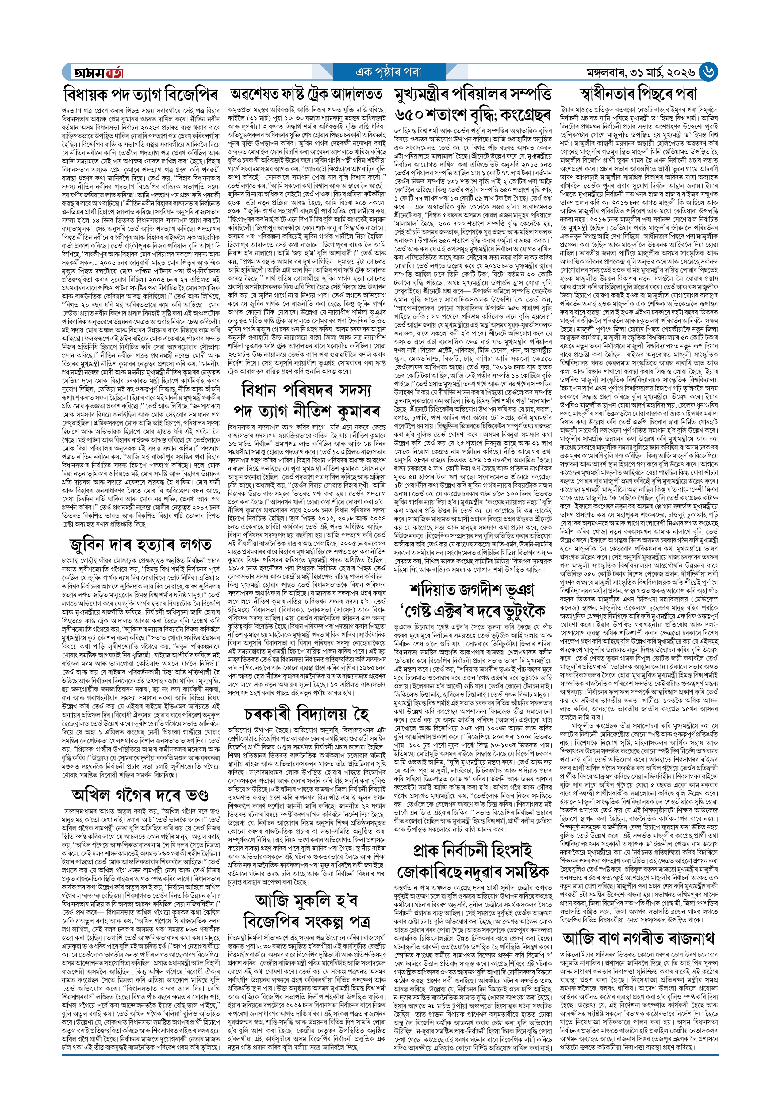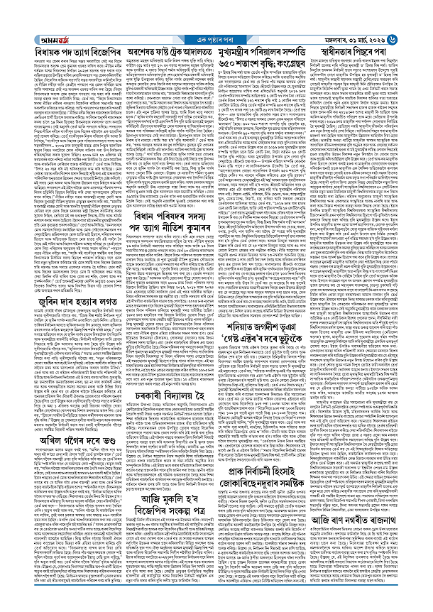 31-03-2026 Page: 6 March 31, 2026 Asom Barta Page 1Page 2Page 3Page 4Page 5Page 6Page 7Page 8 Thumbnails × 31-03-2026 Page 1Page 2Page 3Page 4Page 5Page 6Page 7Page 8 Full PDF << First << 5 6 >> Last >> << First << 6 >> Last >> Hide Page 1Page 2Page 3Page 4Page 5Page 6Page 7Page 8