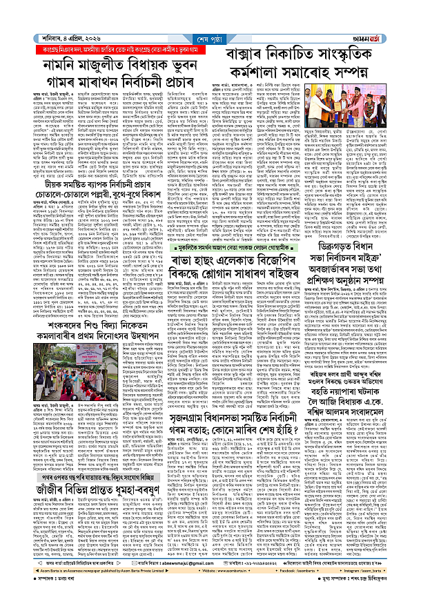 04-04-2026 Page: 8 April 04, 2026 Asom Barta Page 1Page 2Page 3Page 4Page 5Page 6Page 7Page 8 Thumbnails × 04-04-2026 Page 1Page 2Page 3Page 4Page 5Page 6Page 7Page 8 Full PDF << First << 7 8 >> Last >> << First << 8 >> Last >> Hide Page 1Page 2Page 3Page 4Page 5Page 6Page 7Page 8