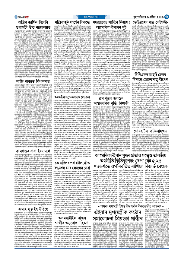 09-04-2026 Page: 6 April 09, 2026 Asom Barta Page 1Page 2Page 3Page 4Page 5Page 6Page 7Page 8 Thumbnails × 09-04-2026 Page 1Page 2Page 3Page 4Page 5Page 6Page 7Page 8 Full PDF << First << 5 6 >> Last >> << First << 6 >> Last >> Hide Page 1Page 2Page 3Page 4Page 5Page 6Page 7Page 8