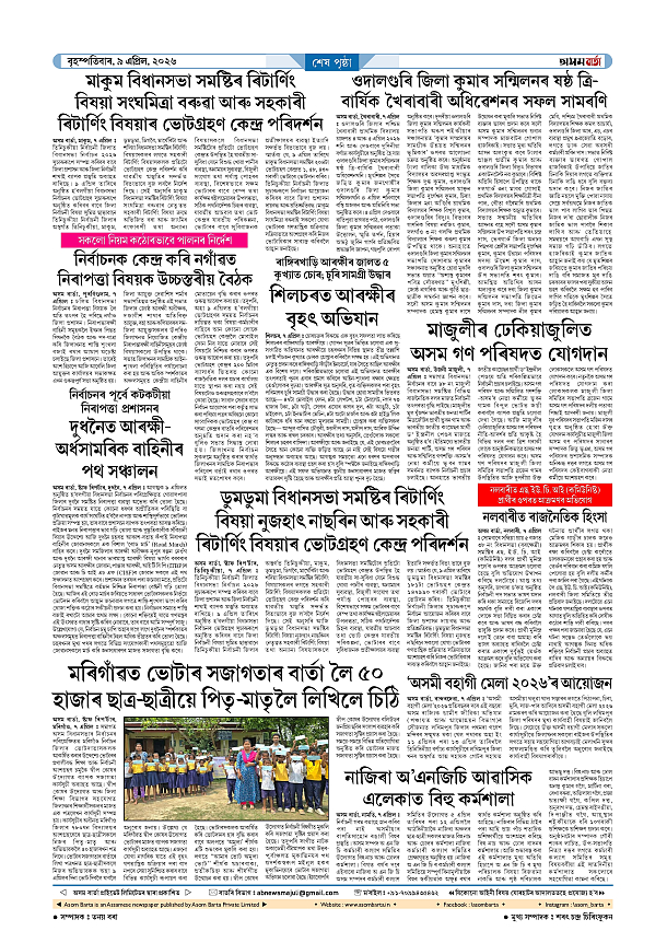 09-04-2026 Page: 8 April 09, 2026 Asom Barta Page 1Page 2Page 3Page 4Page 5Page 6Page 7Page 8 Thumbnails × 09-04-2026 Page 1Page 2Page 3Page 4Page 5Page 6Page 7Page 8 Full PDF << First << 7 8 >> Last >> << First << 8 >> Last >> Hide Page 1Page 2Page 3Page 4Page 5Page 6Page 7Page 8