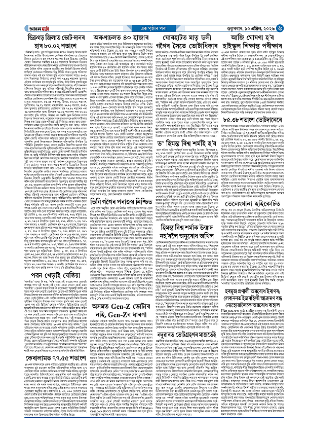 10-04-2026 Page: 6 April 10, 2026 Asom Barta Page 1Page 2Page 3Page 4Page 5Page 6Page 7 Thumbnails × 10-04-2026 Page 1Page 2Page 3Page 4Page 5Page 6Page 7 Full PDF << First << 5 6 >> Last >> << First << 6 >> Last >> Hide Page 1Page 2Page 3Page 4Page 5Page 6Page 7